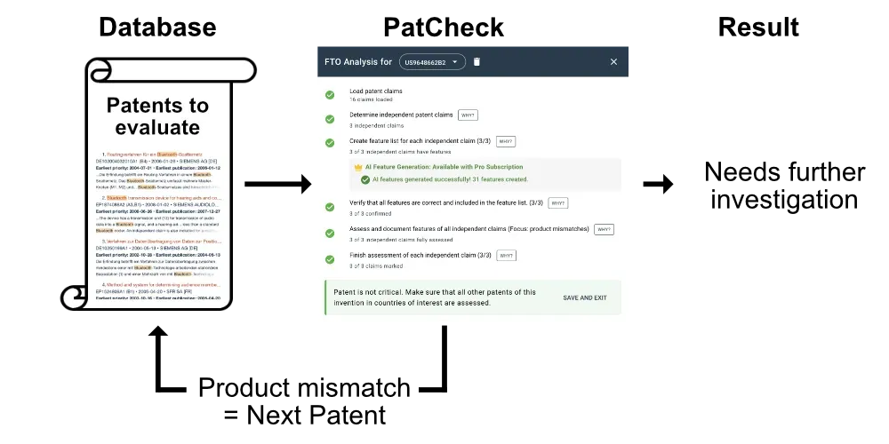 PatCheck gives you a clear, guided path to assess potential patent risks early –